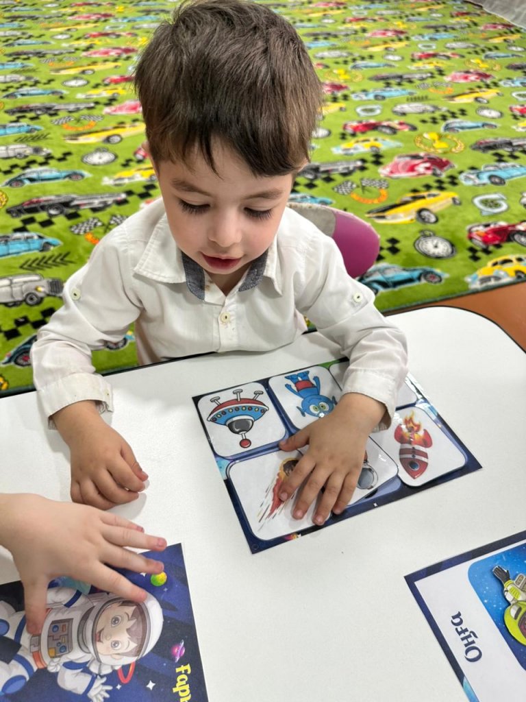 Міндеттері: Ғарыш, жұлдыздар және планеталар туралы негізгі түсінік беру; Тұңғыш ғарышкерді таныстыру; Сөйлеу, бейнелеу, білуге құштарлықты дамыту;